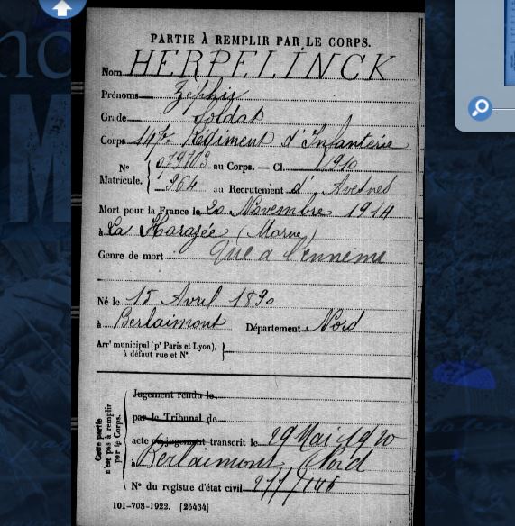 - Zéphir Herpelinck, né le 15 avril 1890 à Berlaimont