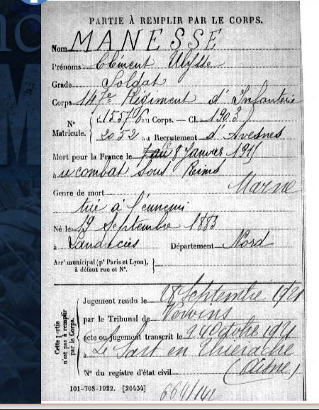 - Clément Manesse, né le 19 septembre 1883 à Landrecies